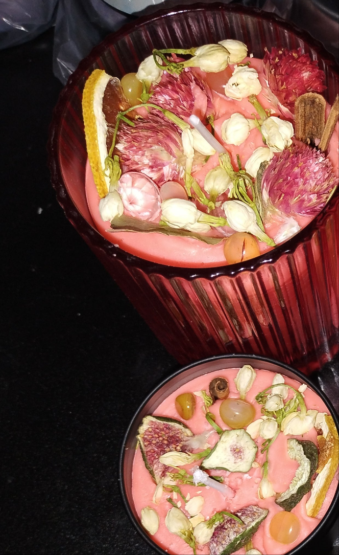 Note: The 12oz glass candles are glass pink candles heat resistant as well. Priced higher due to the elegance of this homemade candle.